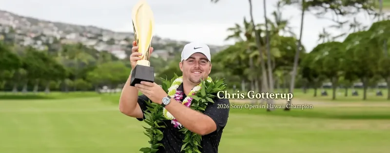 Chris Gotterup opened the 2026 PGA TOUR season in style, winning at Waialae Country Club with a 16-under total to capture his third career TOUR title. The 26-year-old closed with a 6-under 64 on Sunday to win by two over 54-hole leader Davis Riley. Gotterup's two-stroke victory is the largest winning margin at the Sony Open in Hawaii since Matt Kuchar's four-shot win in 2019.