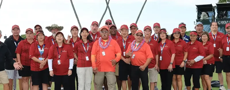 2026年度「チェスター・カハペア・年間最優秀ボランティア・チェア」を受賞したトッド・ボグシュ氏は、5年前にギャラリー管理チームの一員としてソニーオープン・イン・ハワイでのキャリアをスタートさせました。現在はコース・エコロジー委員会のチェアに就任して2年目を迎え、34名の専任ボランティアチームを率いています。彼のチームは、ゴルフコース全域に設置された400個以上のゴミ箱およびリサイクル容器の配置、保守、管理という重要な任務を担っています。